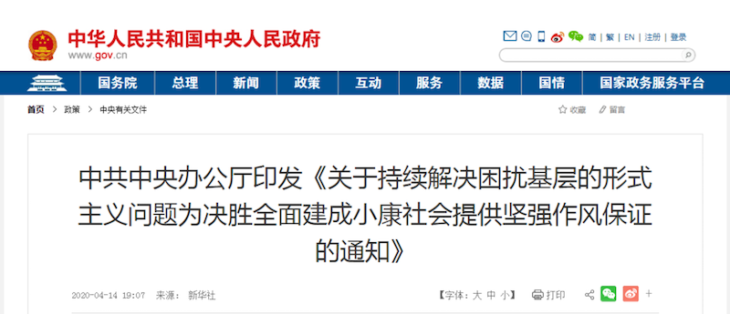近日,中共中央辦公廳印發(fā)了《關(guān)于持續(xù)解決困擾基層的形式主義問題為決勝全面建成小康社會提供堅強作風保證的...